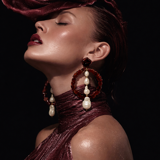 Garnet Gemstone Hoops With Baroque Pearls